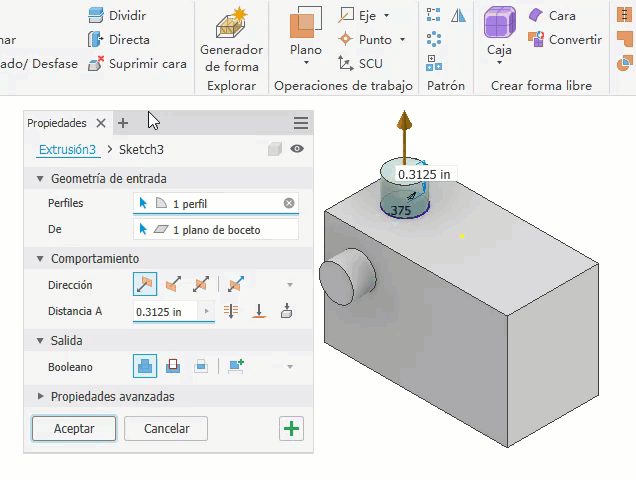 Para obtener más información sobre el comando Combinar, consulte Procedimiento para combinar o dividir cuerpos o caras