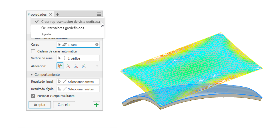 La opción Crear representación de vista dedicada facilita el proceso de aislar y documentar la superficie de salida.