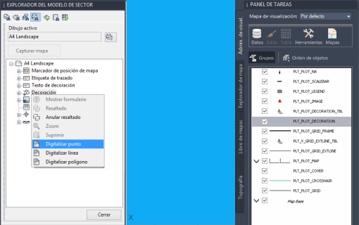 - Se ha importado el archivo Dump de demostración de gestión del suelo y se ha guardado el modelo de sector PLOT_ACADBLOCKS. Se ha activado la extensión de trazado para que el modelo de sector.