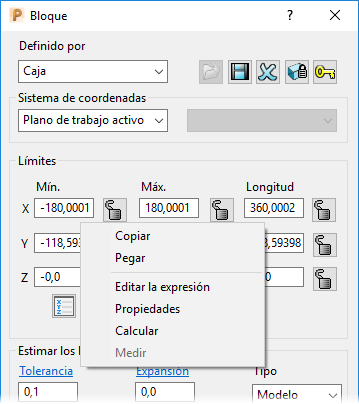 Editar la expresión — Seleccione esta opción para abrir la barra de herramientas del Editor de expresión y poder crear, editar y calcular las expresiones.
