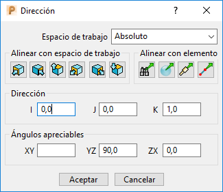 Dirección — Introduzca las coordenadas I, J y K del vector unitario.
