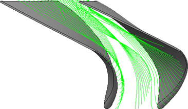 Espiral — Genera trayectorias en espiral entre las pasadas cerradas consecutivas de un álabe. Espiral funciona mejor cuando el Desfase utilizado es de Combinar. Si selecciona Desfase hacia arriba o Desfase hacia abajo, la trayectoria podría contener pasadas abiertas que no pueden formar parte de la espiral.