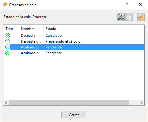 - Añada algunas entidades a los procesos en cola y, en la barra de Estado, haga clic en