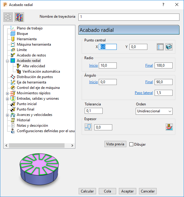Esta estrategia es útil para mecanizar piezas circulares o cónicas.