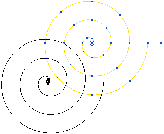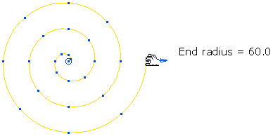 O bien, puede crear la espiral gráficamente. Por ejemplo, si selecciona el controlador del radio final (el cursor cambia a