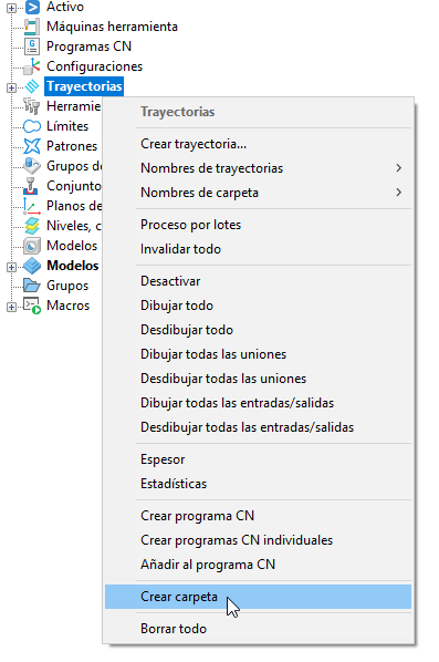 Puede crear una carpeta dentro de cualquiera de las entidades del explorador, pero es probable que sean de mucha mayor utilidad para organizar herramientas y trayectorias.