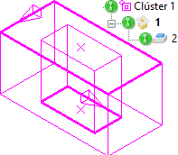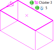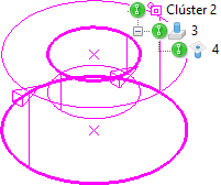 — Muestra los clústeres de figuras y las figuras incluidas en ellos. Un clúster contiene las figuras que están relacionadas entre sí por la intersección de sus curvas de perfil. En este ejemplo hay tres clústeres:
