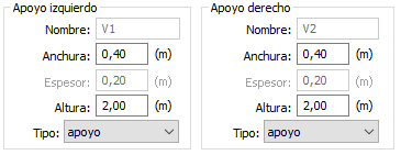 Además, el cuadro de diálogo incluye campos para definir las dimensiones de apoyo. Según el tipo de apoyo seleccionado, el usuario puede definir lo siguiente: