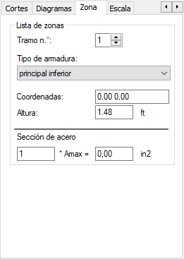 Se puede cambiar el rango de cada una de las zonas. Asimismo, es posible variar el coeficiente de superficie de la armadura, que se refiere a la superficie máxima de la armadura teórica (requerida) en una zona determinada. Seleccione Aplicar cuando se hayan completado los cambios.