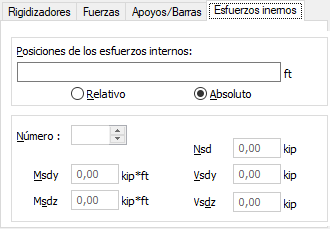 Seleccione la ficha Esfuerzos internos en el cuadro de diálogo Análisis detallado (dimensionado de barras de acero) para abrir el siguiente cuadro de diálogo.