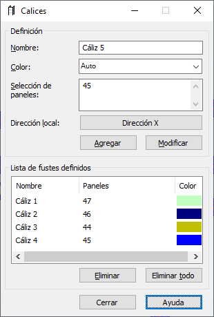 Para definir qué paneles formarán el cáliz definido, siga estas instrucciones: