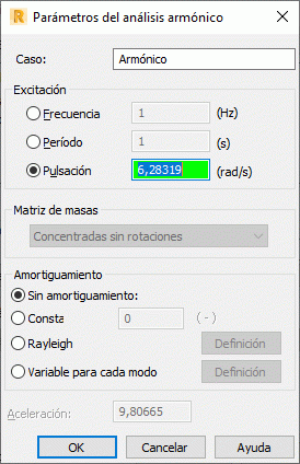 Utilice este cuadro de diálogo para configurar los parámetros del análisis armónico para un caso dinámico.