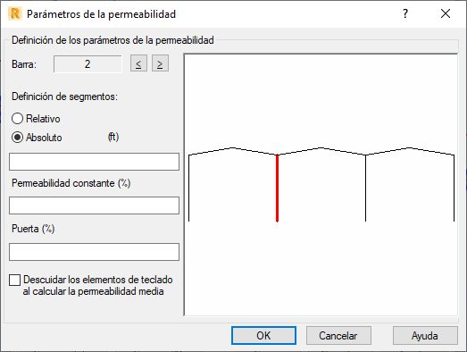 A continuación, debe especificar los valores de permeabilidad para los segmentos de la barra: