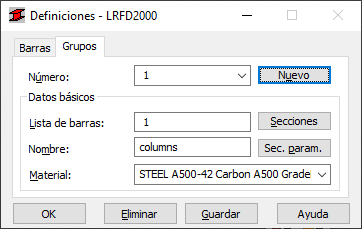El dimensionamiento y la optimización de grupos se realizan en grupos. Por lo tanto, cuando el usuario verifica las secciones de las barras, no es necesario definir el grupo. Sin embargo, si se planifican procedimientos de dimensionamiento u optimización, se deben definir grupos. El motivo básico para agrupar barras es la necesidad de obtener una sección para todas las barras una vez completado el dimensionamiento. Por lo tanto, el requisito más frecuente para la creación de grupos es que las barras tengan exactamente la misma función en la estructura: pilares exteriores en naves industriales, vigas de planta principal, etc. Estos elementos deben haberse realizado a partir de un tipo de sección.
