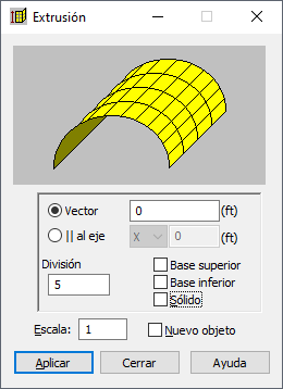 Esta opción crea elementos simples planos o sólidos mediante la extrusión de objetos bidimensionales predefinidos. Se puede acceder a esta opción mediante uno de los siguientes métodos: