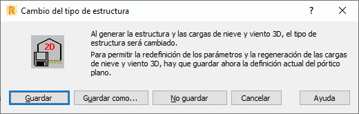 - No guardar: las cargas de viento y nieve en 3D se generan sin guardar el estado del proyecto de estructura después de que las cargas de viento y nieve se generen para 2D.