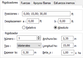Seleccione la ficha Rigidizadores en el cuadro de diálogo Análisis detallado (dimensionamiento de las barras de acero) para abrir el siguiente cuadro de diálogo: