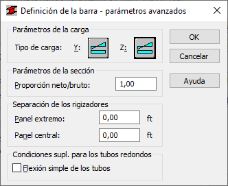 Utilice esta opción para definir parámetros normativos adicionales para el tipo de barra de acero según las normas CAN/CSA-S16.1-94, CAN/CSA-S16-01 + Sup. N.º 1 (2005), CAN/CSA-S16-09 y CAN/CSA-S16-14. Para acceder a los parámetros, haga clic en el botón Más del cuadro de diálogo Definición de la barra - parámetros.