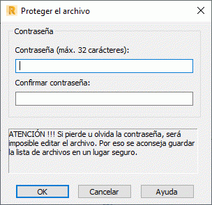 Utilice este cuadro de diálogo para proteger el proyecto con una contraseña.