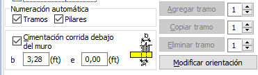 En el módulo de cimentaciones corridas, las opciones disponibles en la parte inferior del cuadro de diálogo para la definición de la geometría son diferentes.