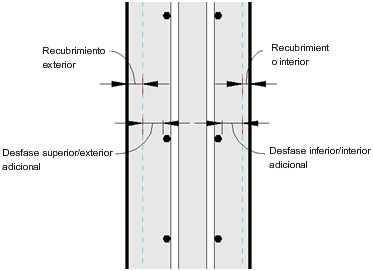 | Desfase del recubrimiento superior/exterior adicional | Especifica el desfase adicional desde el recubrimiento de armadura superior/exterior. Permite colocar juntos varios elementos de armadura en diferentes capas de refuerzo de área. |