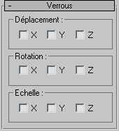 Le panneau déroulant Verrous empêche un objet de se transformer le long d'axes locaux spécifiques.