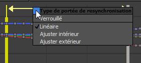 Les paramètres de durée sont disponibles dans le menu Type de portée de resynchronisation, que vous ouvrez en cliquant avec le bouton droit de la souris sur la ligne de durée. Chaque durée peut avoir des valeurs différentes.