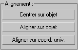 Les outils disponibles dans cette zone dépendent de l'activation ou non des options Affecter seulement pivot et Affecter seulement objet dans la zone Déplacer/Rotation/Echelle (voir ci-dessus). Les outils ne sont pas disponibles lorsque l'option Affecter hiérarchie seule est activée.