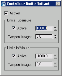 Plus petite valeur permise par le contrôleur de limites. Toutes les valeurs en dessous de cette valeur dans le contrôleur d'origine prennent automatiquement cette valeur limite, sauf si la fonction de lissage est activée. Valeur par défaut : -1000,0.