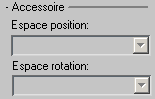 - Permet de définir l'espace de rotation des accessoires par rapport à l'univers, au corps, à la main gauche ou droite.