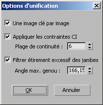 Lorsque vous chargez un fichier d'archives de bipède (BIP) externe sur un bipède, il est possible qu'elles contiennent des contrôleurs d'animation différents (par exemple, des archives Euler chargées sur un bipède quaternionique). Lorsque ceci se produit, les animations de bipède sont converties pour correspondre au contrôleur du fichier d'archives de bipède.