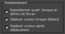 - Repositionner QUADR. lorsque en dehors de l'écran
