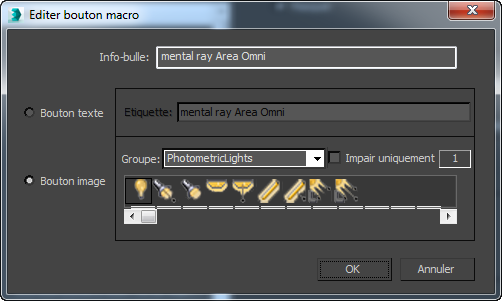 Après avoir créé les fichiers d'icône, copiez-les dans le dossier UI/icons et redémarrez 3ds Max. Cela permet à 3ds Max de rechercher et d'afficher le groupe lorsque vous ouvrez la boîte de dialogue Editer apparence bouton.