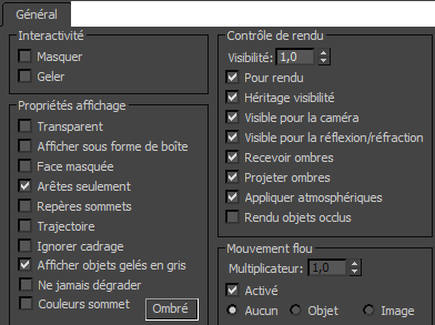 Zone Propriétés de radiosité