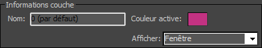 - Nom de la couche sélectionnée, modifiable (à condition qu'il ne s'agisse pas de la couche 0). Ce nom peut contenir jusqu'à 255 caractères. Il peut inclure des lettres, des chiffres, des espaces et les caractères spéciaux dollar ($), trait d'union (-) et trait de soulignement (_).