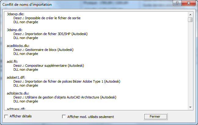 Afficher détailsAffiche des informations concernant toutes les classes prises en charge par chaque plug-in.