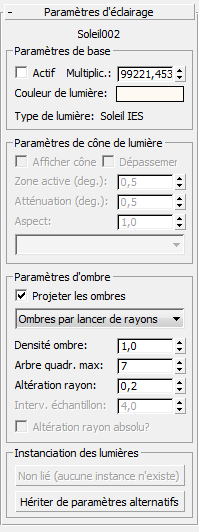 Ajuste les paramètres d'une lumière du soleil Standard ou Soleil IES, ou pour une lumière qui n'est pas de type soleil.