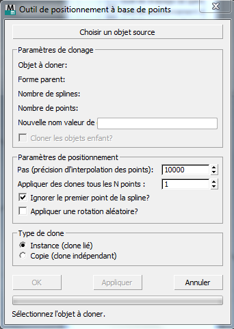 Avant d'utiliser cet outil, utilisez l'Editeur de style de positionnement d'objet Civil View pour placer un objet source au début de cette forme parent. Vous pouvez ensuite utiliser cet outil pour cloner l'objet sur chaque point de la forme parent.