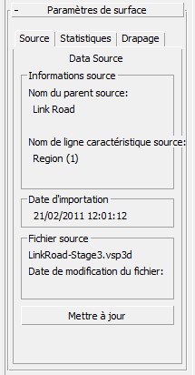 Affiche des informations relatives aux objets surface importés et permet de mettre à jour une surface ou de "draper" un bitmap sur une surface.