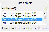 Affiche une liste d'objets individuels issus de la catégorie d'objet actuellement sélectionnée dans l'explorateur Civil View.
