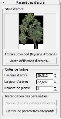 Lorsque vous sélectionnez un fichier de définition d'arbre, la texture et la géométrie de l'objet d'arbre sont mises à jour.