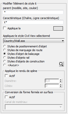Chaque élément de style comprend des masques pour le parent et la caractéristique. Ces commandes vous permettent d'appliquer une définition de style Civil View à cette caractéristique importée spécifique.