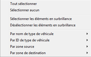 • Cliquez avec le bouton droit de la souris sur la liste pour afficher les options permettant de sélectionner plusieurs véhicules.