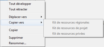 Cliquez avec le bouton droit de la souris sur une entrée dans cette liste pour supprimer ou renommer l'objet ou encore le déplacer ou le copier dans un autre kit de ressources. Le menu contextuel gère également la liste elle-même.