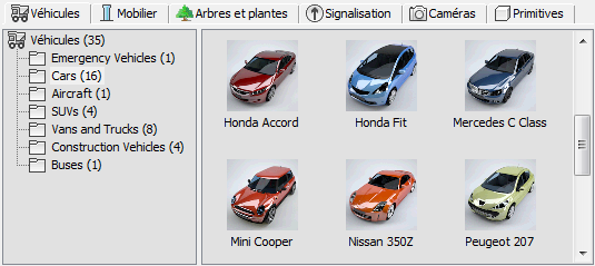 La bibliothèque d'objets Civil View constitue la base du contenu de l'Editeur de style de positionnement d'objet. Ce groupe de fonctions permet d'insérer des objets de la catégorie Objets placés dans la scène courante.