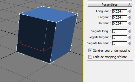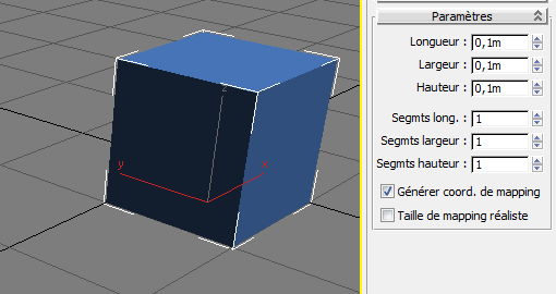 Une boîte cubique occupant une grille d'origine carrée mesure 10x10x10 unités génériques avec le système de mesure par défaut.