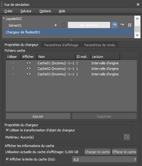 Utilisez le groupe de fonctions Propriétés du chargeur pour modifier les paramètres de tout objet Chargeur de fluides existant.