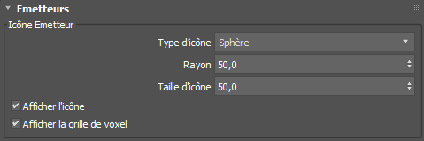 Sélectionnez le type d'icône de l'émetteur : Sphère, Boîte, Plan ou Personnalisé.