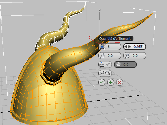 L'extrusion des cornes le long d'un chemin permet d'éviter de nombreux va-et-vient entre les outils de transformation et ceux de modélisation de polygones.