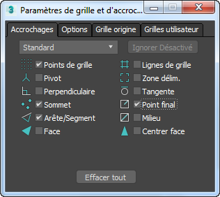 3ds Max ouvre la boîte de dialogue Paramètres de grille et d'accrochage.